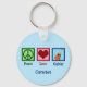 A pretty peace sign, heart, and a cool classical guitar image makes a great guitarist custom keychain gift for someone in a band or a guitar teacher. Cute Peace Love Guitar design. Let's rock and roll and make some music!