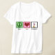 A peace sign, heart, and a gymnast doing a handstand on a beam. A pretty women's gynmnastics t-shirt.