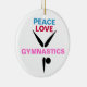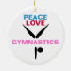 If you love Gymnastics, you'll dig our Peace Love Gymnastics Ornament! Cool double-sided design features stylised gymnast with text in blue, red and bright pink! Hanging ribbon included. The perfect keepsake gift for friends who love Gymnastics!