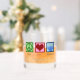 Peace Love Hanukkah customizable whiskey glass with a peace sign, heart, and menorah for a Jewish family celebrating Chanukah.