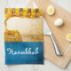 Peace Love Hanukkah Script Yellow Gold Menorah Tea Towel