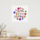 Share your love for feeling happy and have some retro fun with this colorful design with flowers, a peace sign, heart, and the words - Peace Love Happiness.
