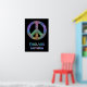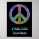 Vintage style psychedelic peace sign poster with "Peace Love Happiness" in a classic sixties font.