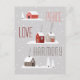 Send seasons greetings to friends and family with this adorable retro style Christmas postcard. A soft grey background with snow features three cute country houses with smoke coming from the chimneys. Modern and trendy text says "PEACE LOVE HARMONY." Personalise this Xmas greeting card with your family picture and enter your family name and return address for preprinted convenience.