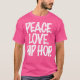 Peace Love Hip Hop Dancing Tee. Express your passion for dance with this vibrant and stylish garment. Perfect for practice, casual wear, or showcasing your love for rhythm and movement.