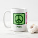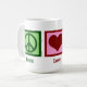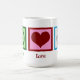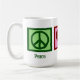Cute hippo gift featuring a pretty green peace sign, heart, and an adorable cartoon hippopotamus. Peace Love Hippos mug.