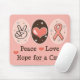 Show support for a family member or friend with a pink and brown peace symbol, heart and pink ribbon design with polk a dots and flowers that says Hope for a Cure. Breast cancer awareness merchandise makes great breast cancer awareness gifts for people who want to show support for family members and friends affected by the disease, oncologists and oncology nurses.