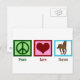 I love beautiful horses. A pretty green peace sign, a red heart, and a brown horse on a blue square makes a cute equestrian postcard to go with a gift.