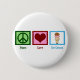 Pretty peace sign, heart, and a triple scoop of chocolate, vanilla, and strawberry ice cream in a cone. A cute ice cream parlour button.