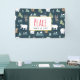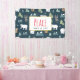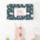 A banner which says Peace Love & Joy - with a whimsical festive pattern. Polar bears, reindeers, trees. foxes, and snowflakes. On a dark green background.