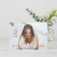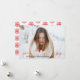 Modern and trendy greeting card to send to your family and friends. Peace love and joy (with hearts) in red colour. Back has red snowflakes pattern design. PHOTO to be added. Personalise with your name and year.
