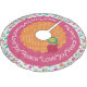 Peace Love Joy holiday tree skirt features a beautiful design of colourful strings of lights on white, a ring of solid pink, and a ring of orange with white polka dots with some pretty ornaments in matching aqua, mustard, and hot pink and text that reads Peace*Love*Joy! This beautiful Christmas tree skirt will be treasured for years to come!