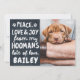 Design is composed of a dark background with a funny message --- "Peace Love & Joy from my Hoomans"
