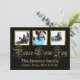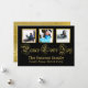 Peace Love Joy ornamental typography holiday Christmas photo flat card featuring the text “Peace Love Joy” made of faux gold foil in an ornamental typography script font and three photos of your family with gold frames on black background. Elegant and modern yet with a vintage flair this card is perfect for your holiday greetings.On the back there is gold foil or you can remove it and choose black or whatever colour you want from Zazzle colour chart. Note that the gold foil is just a printed image.