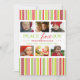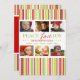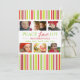 Festive stripes in red and green send holiday greetings to family and loved ones in this card that features six photos of your family. A fun and colourful wish for Peace, Love and Joy this holiday season.