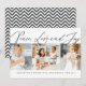 Design at the front consist of playful cursive typography of "Peace Love & Joy". Add a custom photo of your family and add family name. This design is modern, chic, playful and fun.