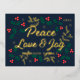 Peace Love & Joy Modern Red Holly Berries Foliage Foil Holiday Postcard