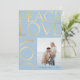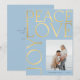 Elegant modern typography Peace Love Joy custom photo faux gold and light baby blue Christmas holiday card with your custom personalised text on both sides.
