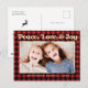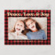 Peace Love & Joy Plaid Pattern Family Photo Holiday Postcard