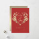Peace Love Joy Red Gold Floral Christmas Holiday Card