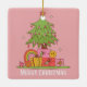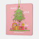 Peace, Love & Joy - Retro Christmas Tree in Pink Ceramic Ornament