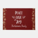“Peace, love & joy.” A playful visual of whimsical, handwritten typography and champagne, antique gold snowflakes and confetti dots against a dark brick red background, helps you usher in Christmas and New Year whenever you enhance your entryway with this stylish and unique custom personalised name Christmas welcome mat. Matching and coordinating cards, envelopes, stickers, giftwrap and other products are also available in my “Christmas Peace, Love & Joy” store collection. What a great way to celebrate this festive season and welcome all who enter your abode!