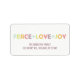 Use this elegant Simple and timeless Joy Peace and Love themed holiday label featuring stylish modern dotted typography in pastel tones (green, yellow, orange, light blue, pink, lilac, purple) .