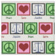 Peace signs, hearts, and the scales of justice on a blue fabric to make gifts for your favourite lawyer, judge, defence attorney, or prosecutor.