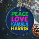 Cute Peace Love Kamala Harris Christmas ornament for a progressive democrat who loves fun, colourful political designs. Vote for Kamala for president in the 2024 election. A fun liberal design in bright colours.