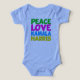 Cute Peace Love Kamala Harris baby bodysuit for a progressive parent who loves fun, colourful political designs on their infant. Vote for Kamala for president in the 2024 election. A fun liberal design in bright colours.