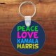 Cute Peace Love Kamala Harris keychain for a progressive democrat who loves fun, colourful political designs. Vote for Kamala for president in the 2024 election. A fun liberal design in bright colours.