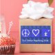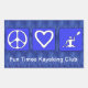 Three blue squares with white designs announcing what really matters in life "Peace, Love, and Kayaking." Great gift for your favourite Kayak Fanatic, or wear it so others will know your true passion.