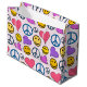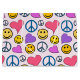 Peace, Love, Laugh, Smile, Live, pattern. With pink and purple hearts, yellow smiling and happy faces, and blue peace sign symbol with a light rose background. Helping you to stay cheerful, motivated, encouragement, inspiration, to have a great day. Surround yourself with positivity. Great for kids, girls, best friends, wife, girlfriend, sisters, aunt, grandmothers, mothers, children, and more.