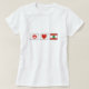 You are going to love displaying peaceful feelings and love for Lebanon with this Lebanese ladies t-shirt where The first box on the left holds a red peace sign, the middle contains a heart and the box on the right proudly displays the country flag of Lebanon.