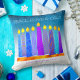 Peace Love Light Bold Hanukkah Candles Turquoise Cushion