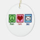 Peace Love Mail Christmas gift for a dedicated postal worker. Your mailman will love this cute post office present with a peace sign, heart, and letter symbolising the postal service.