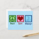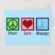 A beautiful blue masseuse postcard that reads Peace Love Massage for a therapist. A cute LMT present for someone who works in massage therapy.