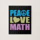Peace Love Math...What else do you need in life? Perfect gift for any math lover! Whether you're a math teacher, a college student majoring in mathematics, a member of the math club, or just a math geek that loves equations, this design is for you! See our shop for more fun and unique Peace Love...shirts and gifts.