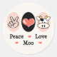 If you love cows, you'll love this adorable peace symbol, heart and Holstein bull black and white dairy cow chewing on a blade of green grass with the words Peace Love Moo on t-shirts, tees, stationery and more apparel and merchandise for anyone who loves cow collectibles. Click on the following link to see all of our original Chrissy H.