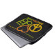 The sleeve is made of nice feeling material and seems very durable. I'm not sure how easy it'll be to clean, but the construction seems sound and the fabric is quick thick. I also like the double zipper. The printing is lovely and appears durable. The white on black contrast is nice, and the design very elegant.