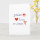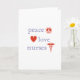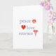 This peace love nurse’s greeting card has three lines of blue text, each with an image next to it. The first line has the word peace in lowercase blue followed by a little red peace sign. The second line starts with a red heart followed by the word love. The third line has the word nurses followed by a red Caduceus symbol.