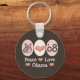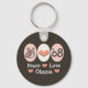Show your support for Barack and the democratic party in 2008 with a cute pink and brown peace symbol, heart and 08 Obama key chain. Dark brown background.