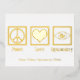 A cute optometrist Christmas postcard featuring a peace sign, heart, and an eye for a doctor of vision and eyesight. Peace Love Optometry holiday postcards for a business. Custom gold foil script for your company.