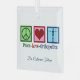 Peace Love Orthopaedics Christmas ornament. A cute custom gift for an orthopaedic surgeon or orthopaedist who works with the musculoskeletal system and patients who need shoulder and hip surgery. A peace sign, heart, and a skeleton.