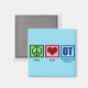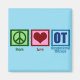 A cute occupational therapist Christmas gift featuring a green peace sign, red heart, and OT written in blue on a blue background. Occupational therapy is such an important occupation. It helps both adults and children with sensory therapy.