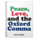 Peace Love Oxford Comma Funny Grammar Custom Notebook
