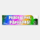 Colourful Peace, Love, and Papillons bumper sticker really stands out on your car. Our dog lover stickers have a rainbow tie-dye background with bone, paw print, heart, and peace sign. Fun and thought provoking statement!