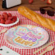 Retro inspired stickers with 70's style daisies and boho fonts and colours