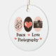 A peace symbol, heart and camera in pink and dark brown with the words Peace Love Photography underneath it on photographer camera t-shirts, tees, apparel, clothing and more items that make a cute gift for a photog, avid scrapbooker or anyone who loves to snap pictures. Click on the following link to see all of our Chrissy H.