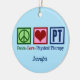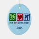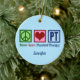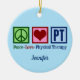 This cute physical therapist Christmas ornament gift features a pretty peace sign, heart, and the letters PT. A beautiful, personalized physical therapy present. Peace Love Physical Therapy.